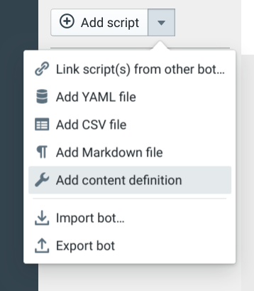 Every content section is represented by a single content definition file: a special YAML script which is part of your bot.
