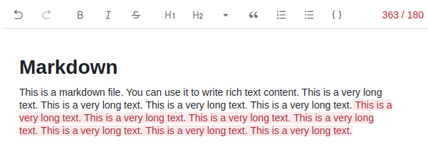 Limit the markdown content to a maximum number of characters. Visually shows an indicator when the number of characters is exceeded, which looks like this: